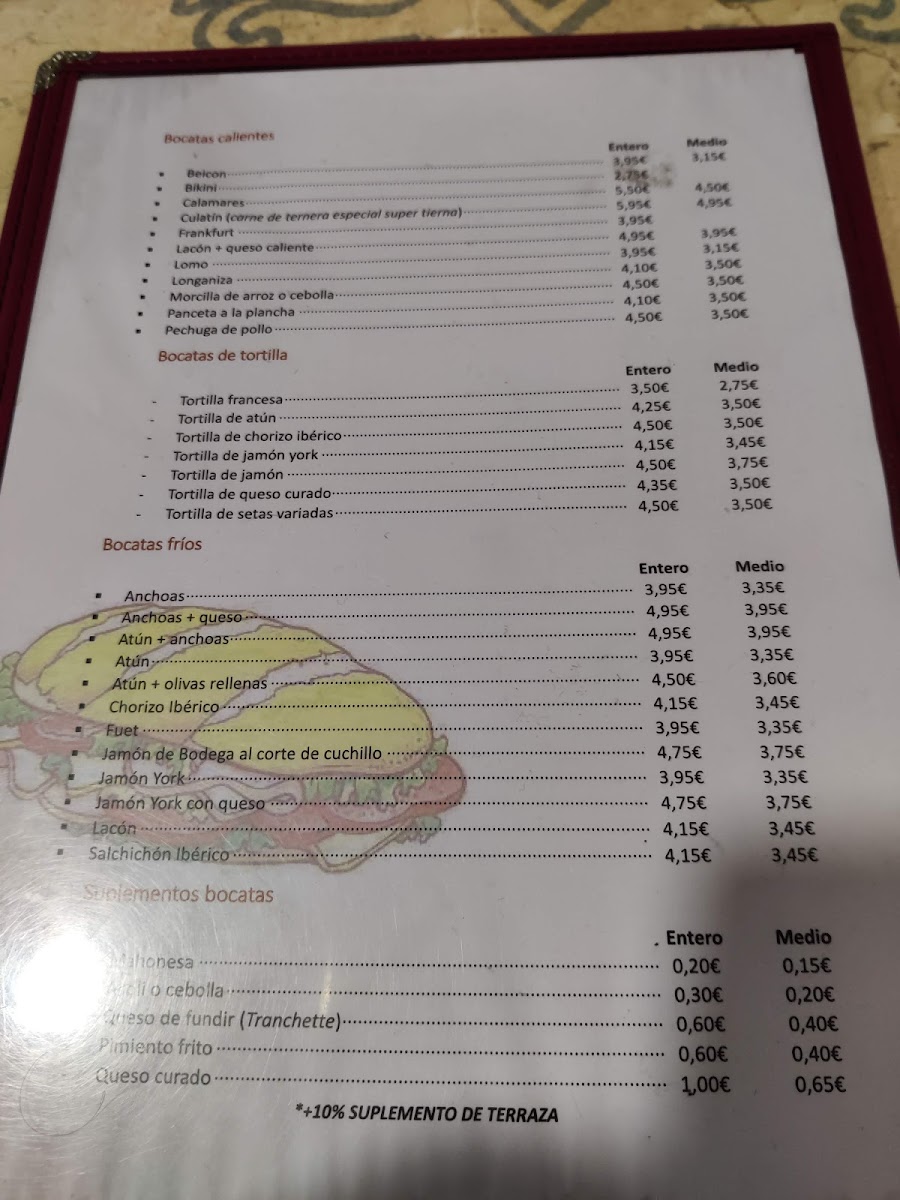 Bar Los Hermanos Menu